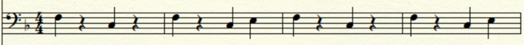 通常の4ビートではベースが1小節に4つの音(ウォーキングベース)を弾きますが、2ビートでは1小節に2つ、つまり1拍目と3拍目を中心に弾きます。